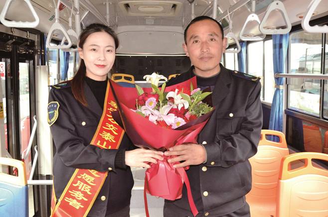 近日,公司“泰山百合”志愿者為第五分公司游3路駕駛員張紹山送上一束鮮花,為他拾金不昧、助人為樂的精神點贊。