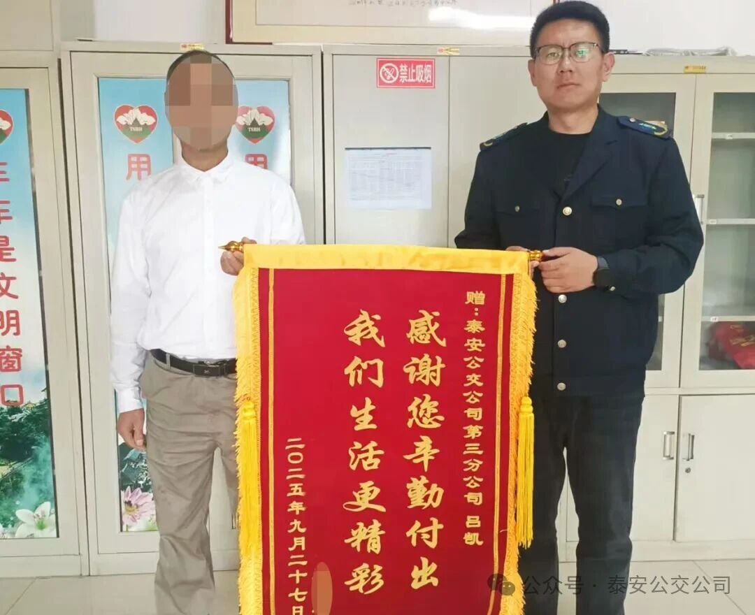 近日,市民裴先生手里緊緊攥著一面錦旗,專程趕到泰安市公交公司第三分公司。這面印著“感謝您辛苦付出 我們生活更精彩”的錦旗,是他特意為7路公交駕駛員呂凱準(zhǔn)備的——只為感謝兩天前的夜晚,呂凱師傅在站點多等的短短幾秒,讓自己順利坐上了公交車。