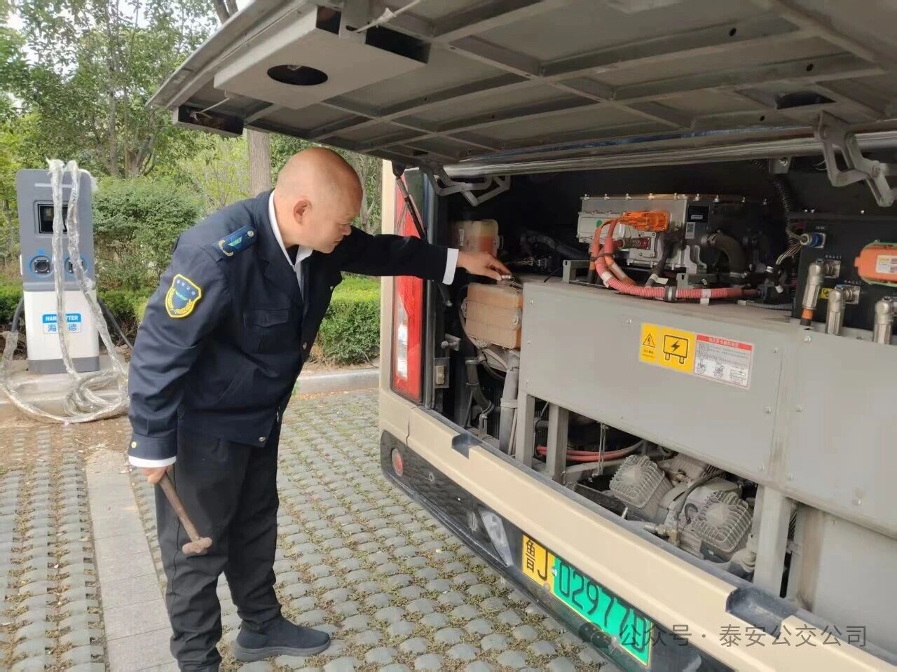 假期首日的泰安,天還未亮,想到假期激增的客流,聶升偉早早來到碧霞大街公交停車場,精神飽滿地投入到出車前的檢查中。