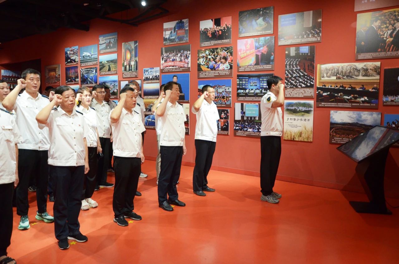在宣誓廳,全體黨員面向鮮紅的黨旗,高舉右拳鄭重宣誓:“我志愿加入中國共產(chǎn)黨…… 隨時準備為黨和人民犧牲一切,永不叛黨。” 鏗鏘有力的誓言在展廳內(nèi)回蕩,字字千鈞,既表達了對革命先烈的緬懷,更彰顯了全體黨員不忘初心、牢記使命,為共產(chǎn)主義事業(yè)奮斗終身的堅定信念。