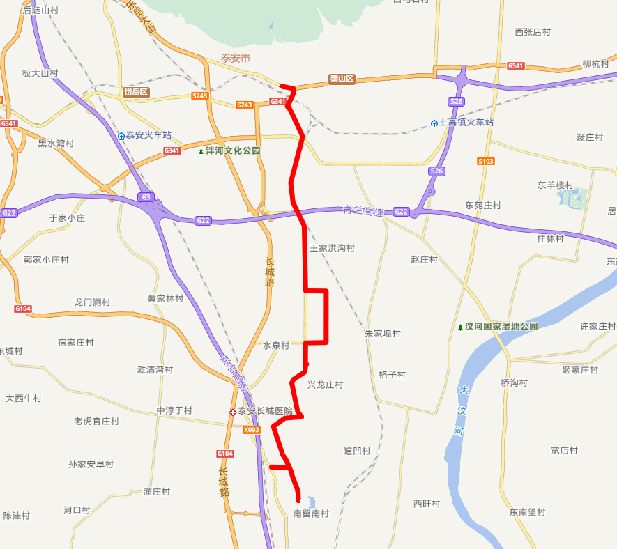優(yōu)化調(diào)整后26路首末站變?yōu)?/span>泰山火車站廣場和太陽部落。運行路線為泰山火車站廣場—站前街—龍?zhí)堵?mdash;南天門大街—龍騰路—中天門大街—龍?zhí)堵?mdash;龍?zhí)赌下?mdash;濱湖路—勝利路—北留街—北留小區(qū)—北留街—勝利路—太陽部落。優(yōu)化調(diào)整后運行路線圖如下: