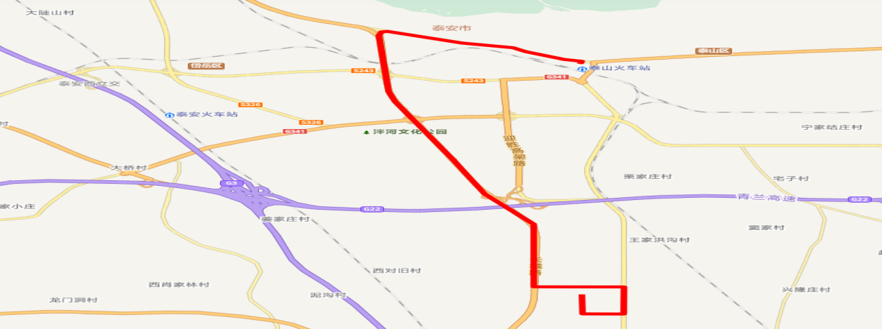 優(yōu)化調(diào)整后9路首末站變?yōu)?/span>泰山火車站廣場和南高新區(qū)公交停車場。運行路線為泰山火車站廣場—站前街—龍?zhí)堵?mdash;東岳大街—長城路—中天門大街—龍?zhí)堵?mdash;一天門大街—龍泉路—南高新區(qū)公交停車場。優(yōu)化調(diào)整后運行路線圖如下: